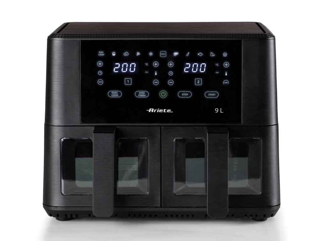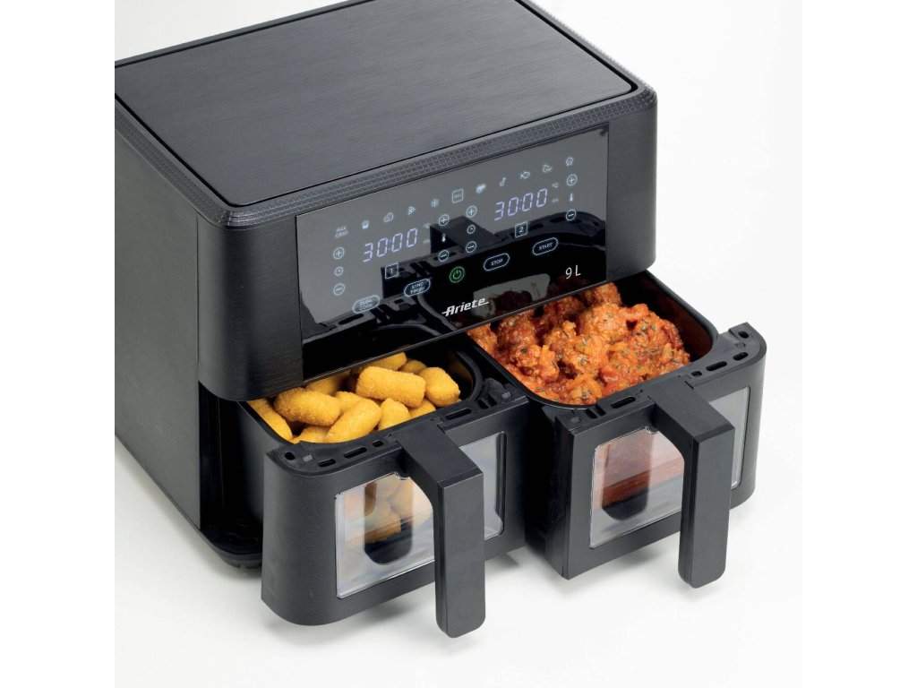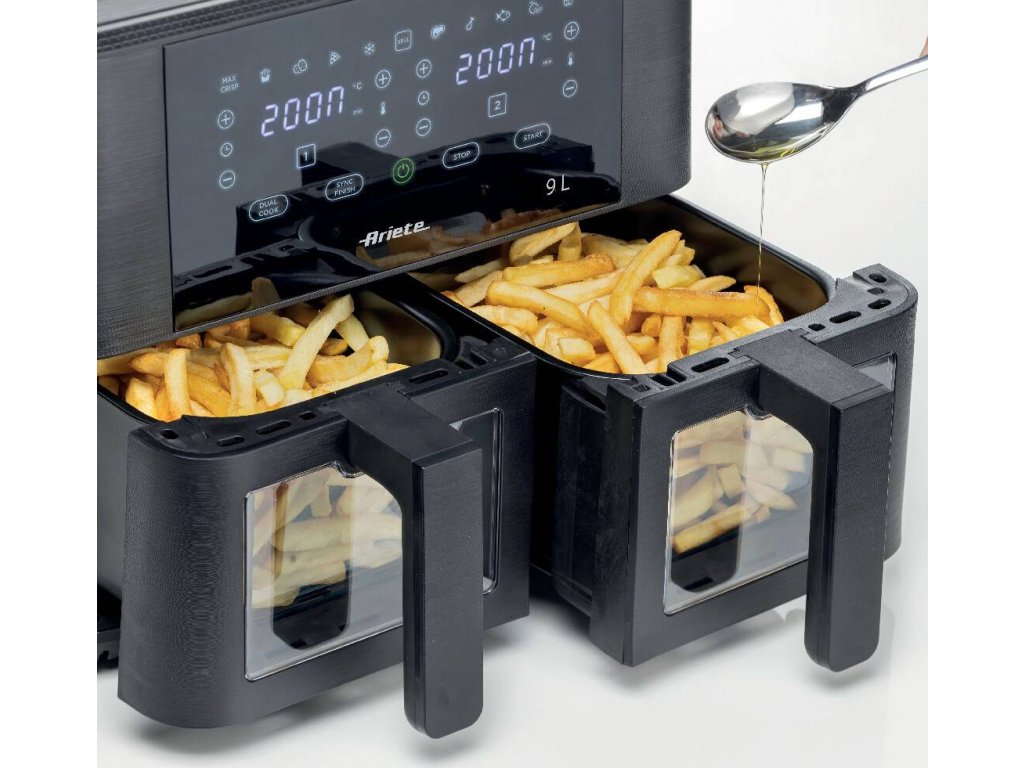 - Účel: teplovzdušná bezolejová fritéza s dvoma košmi