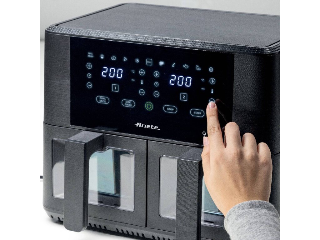 * 11 prednastavených programov: mrazené hranolky, zemiaky, steak/pečené mäso, ryby, kura, pizza, pečené dezerty, max crisp, sušenie, rozmrazovanie a gril