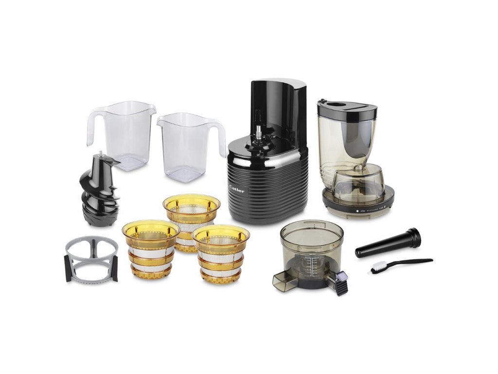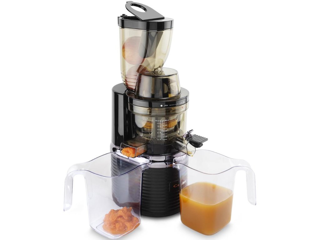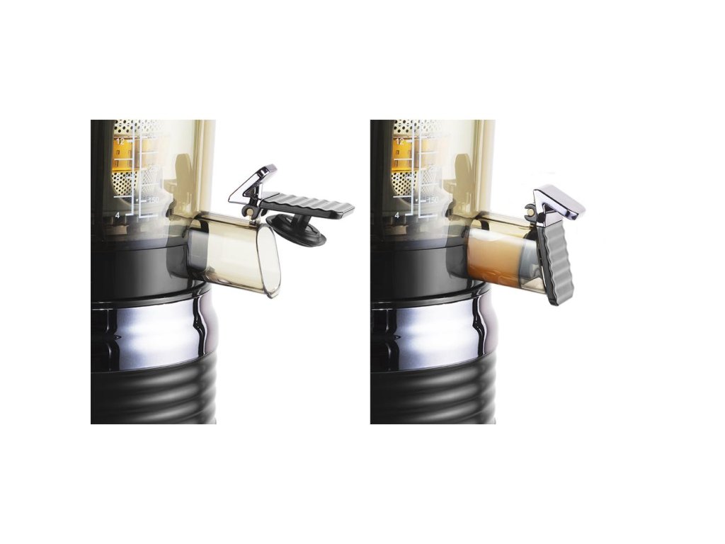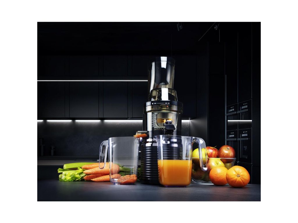 - Komfort a bezpečnosť: vybavený otočným závitom, ktorý ovocie aj zeleninu pomaly rozdrví, preto vyniká svojou výťažnosťou, efektívne spracuje aj listovú zeleninu a tropické ovocie,