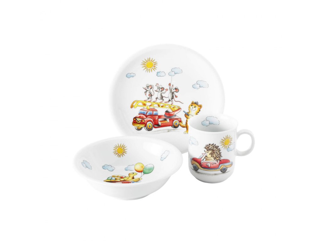 Detský porcelán - Svižné zvieratká, 3 dielna sada