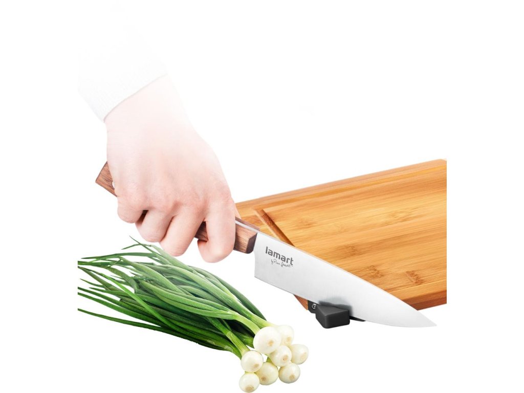 - Účel: krájanie, porciovanie a vyklepávanie potravín, vrchná strana s drážkou na zachytávanie nečistôt a tekutín, netupí ostrie nožov. obsahuje ostrič na nože s volfrámovým nerezovým kameňom