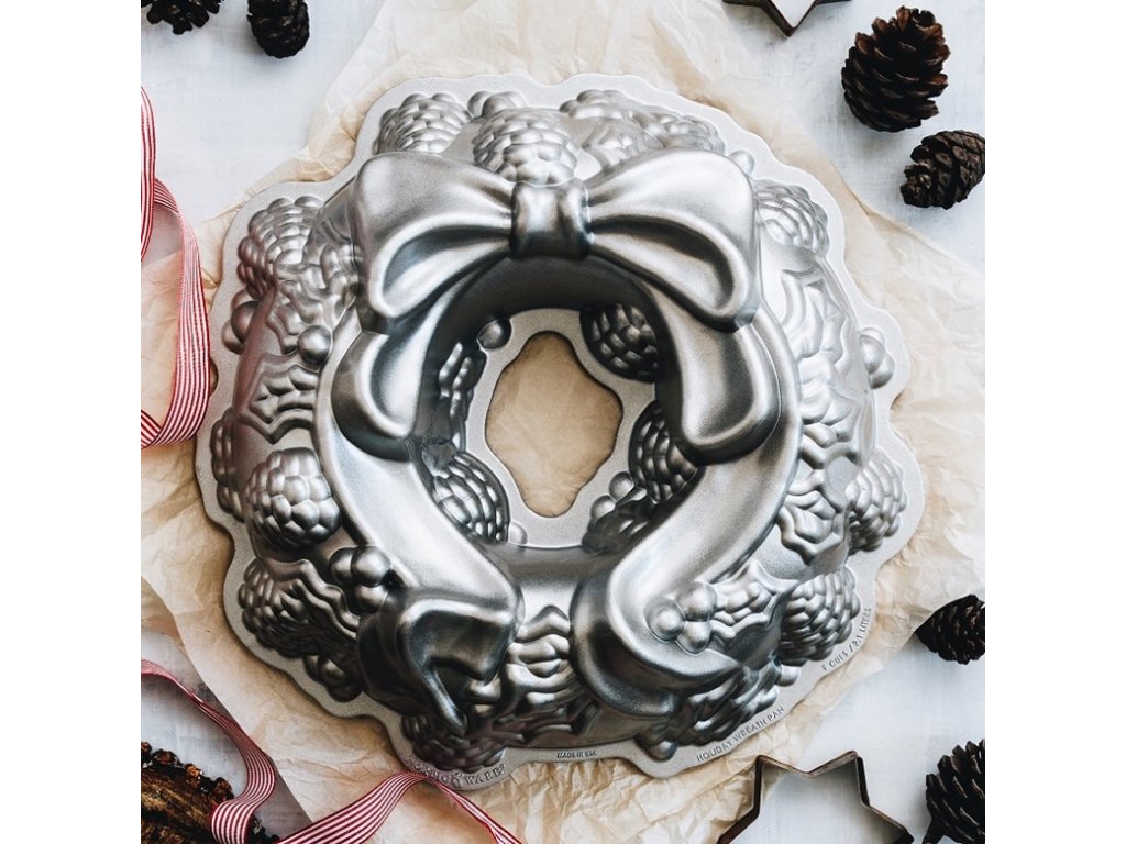 - Účel: forma na bábovku v tvare venca so sviatočným ozdobením