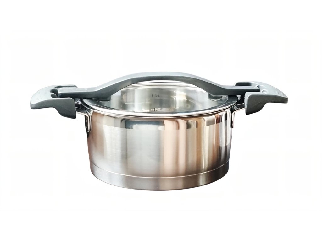 - Účel: luxusný kastról s revolučným systémom regulácie pary a cedenia
