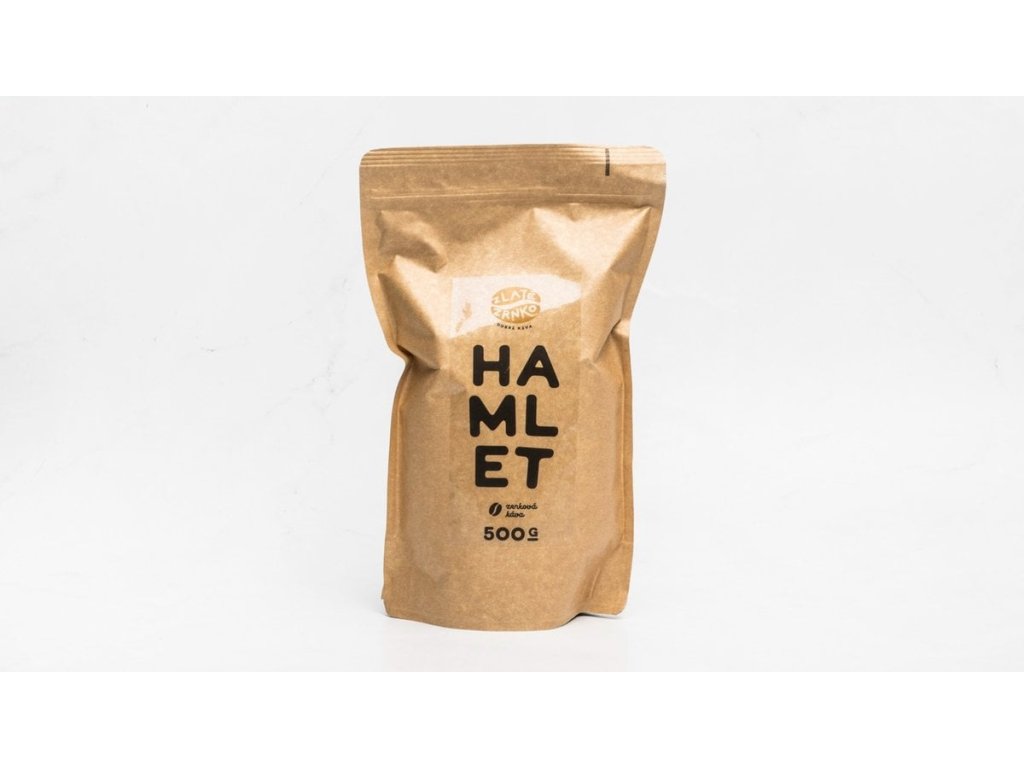Káva Hamlet je stredne-tmavo pražená zmes 50% arabík a 50% robusty, intenzívnej horkej chuti, s tónmi likéru a pudingového koláča.