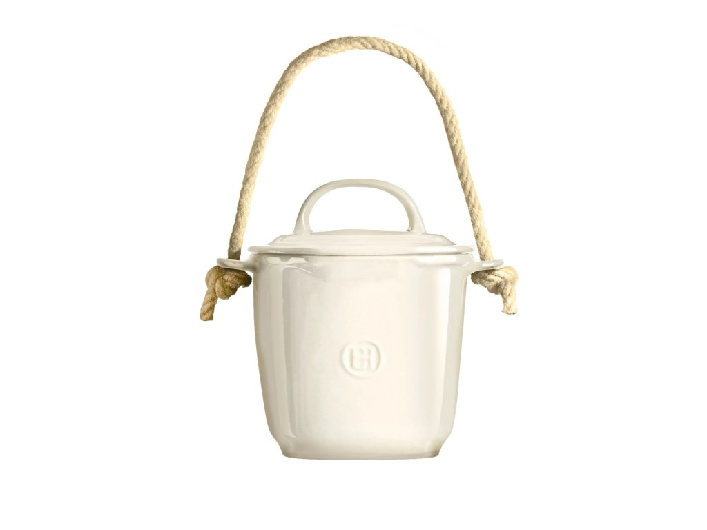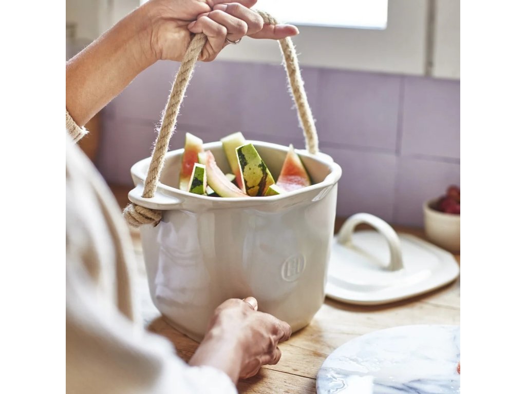 * keramické veko s veľkým úchytom pre ľahkú manipuláciu zadržiava nechcené pachy, zároveň však hermeticky neuzatvára nádobu, aby mohla vetrať a neusadzovala sa v nej vlhkosť