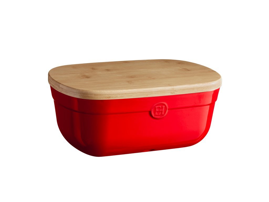 Keramický chlebník s vekom, 35,5 x 24,5 cm, granátová červená