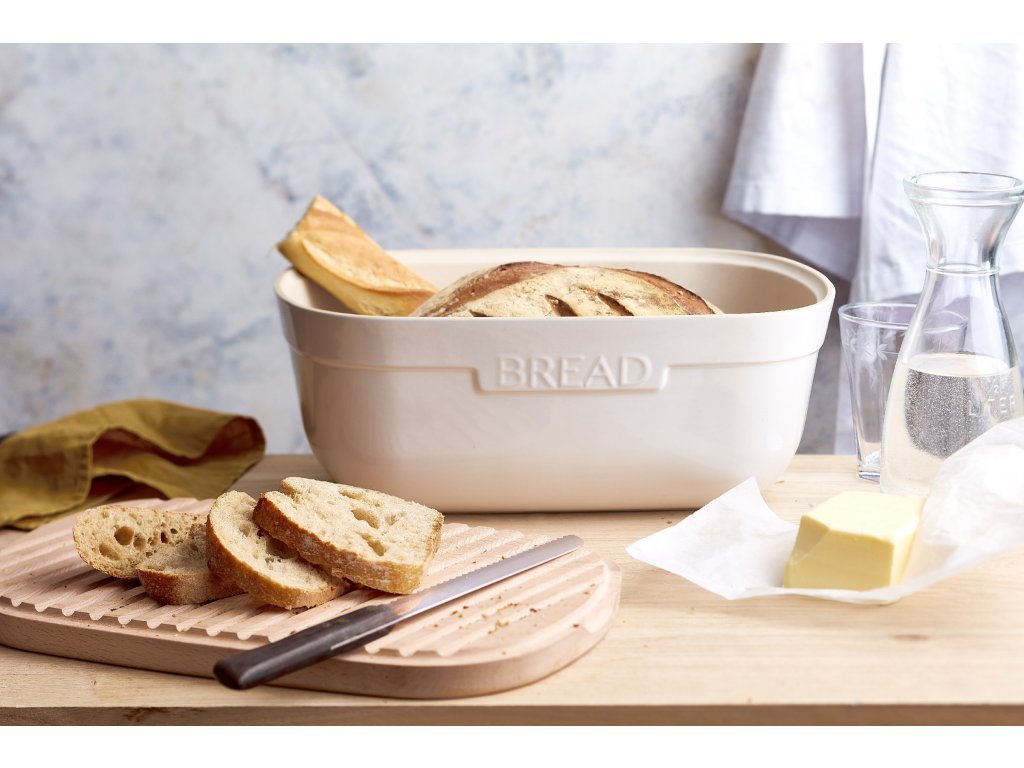 - Účel: keramický chlebník s bambusovým vekom ktoré slúži zároveň ako lopárik na krájanie pečiva