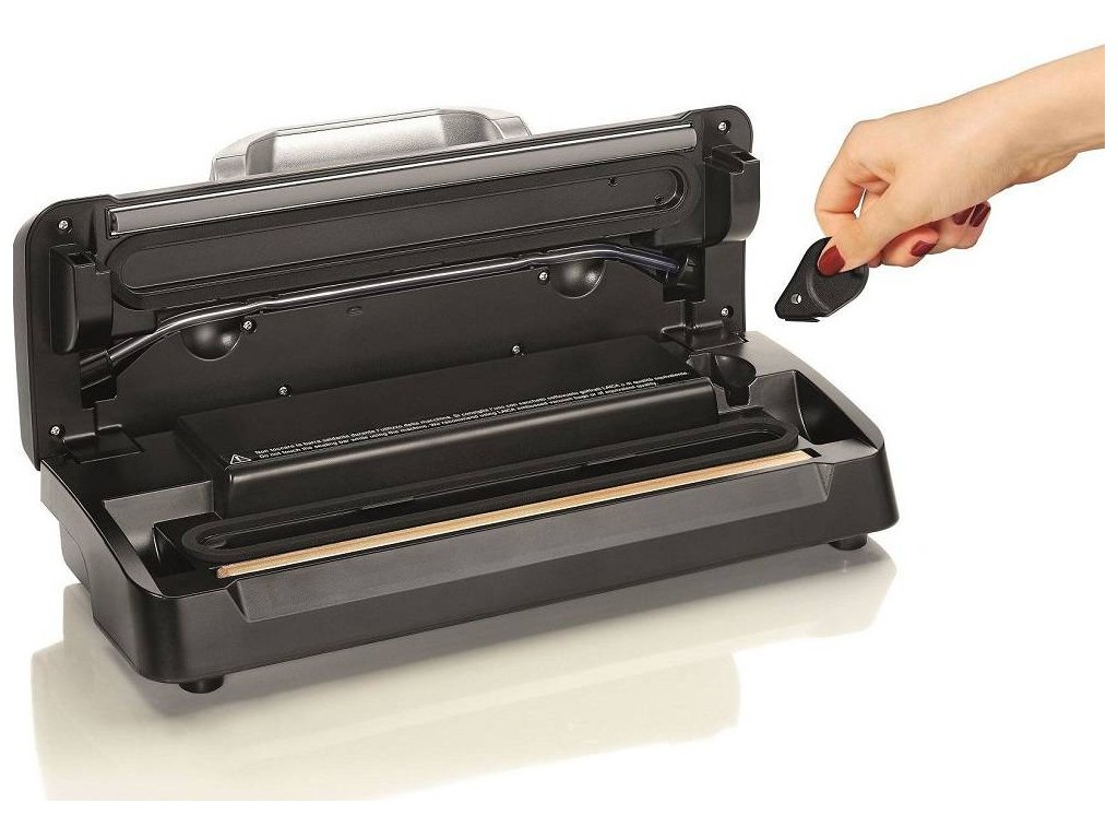 - Príslušenstvo: 1 rolka v rozmere 25 × 600 cm, hadičku na vákuovanie dóz (kompatibilná iba s originál vákuovými nádobami LAICA) , integrovaný rezák roliek