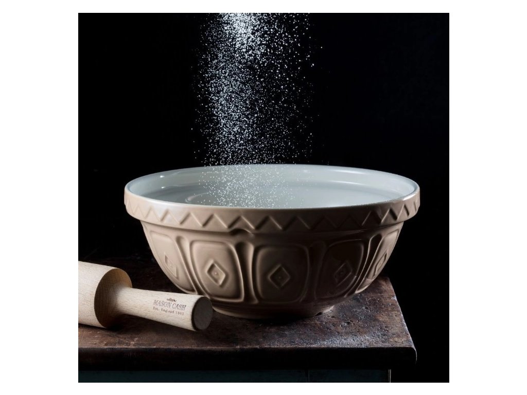 - Účel: misa na cesto v jednoduchom a štýlovom anglickom dizajne, vonkajší povrch misy je po celom obvode zdobený geometrickými reliéfmi