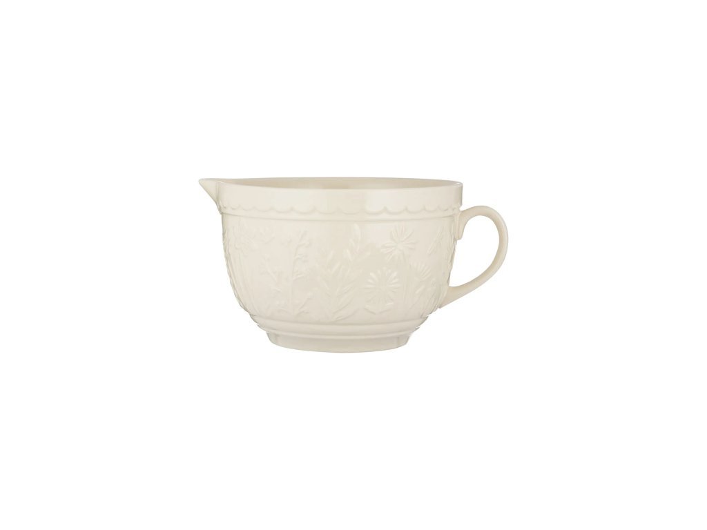 - Účel: misa z britskej kameniny s uchom a zlievacou hubičkou (batter bowl), v krémovej farbe s motívom lúčnych kvetov a poletujúcich motýľov, ideálna na palacinkové cesto