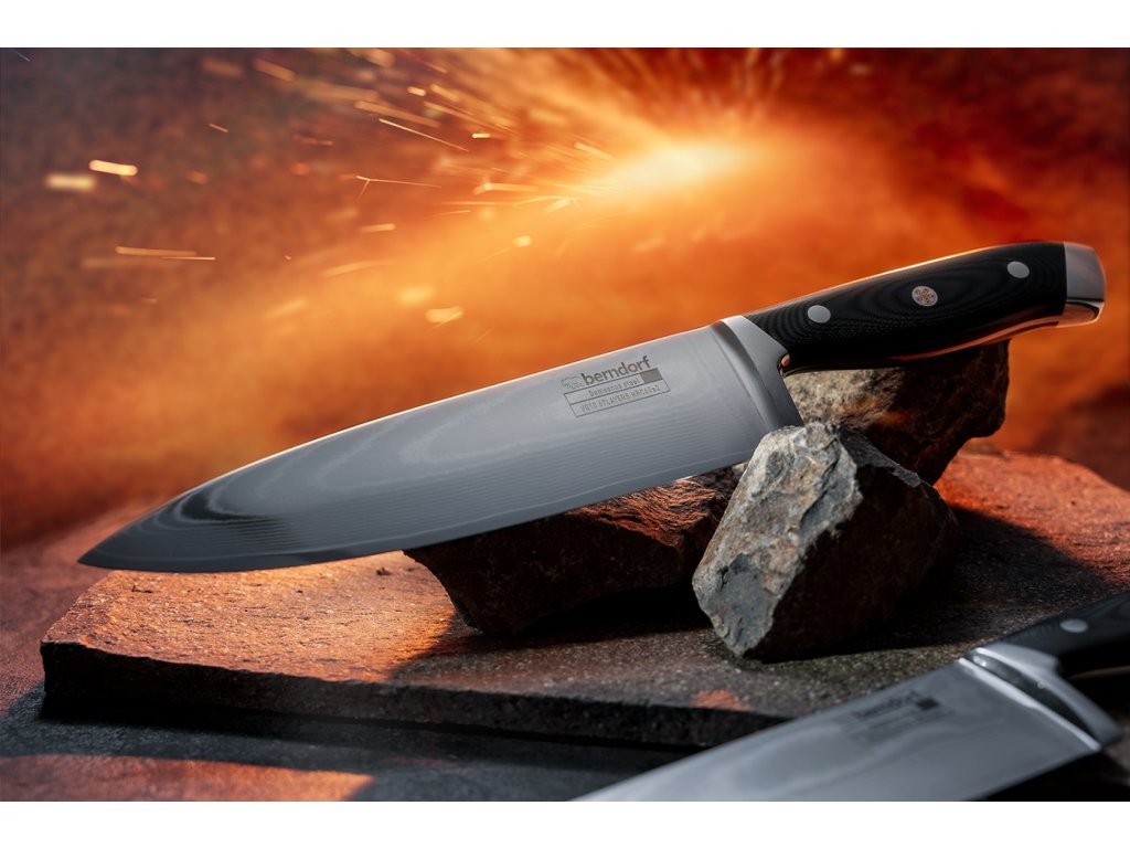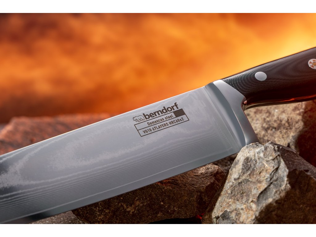 - Účel: na každodenné používanie v domácnosti aj v profesionálnej kuchyni, Damašková oceľ - vzniká spojením viacerých vrstiev plátov ocelí, metódou kováčskeho zvárania do jedného celku. Výsledkom je materiál, ktorý má unikátne vlastnosti prevzaté zo všetkých druhov ocelí, ktoré boli na jeho výrobu použité, ako je krehkosť, húževnatosť, ohybnosť a podobne