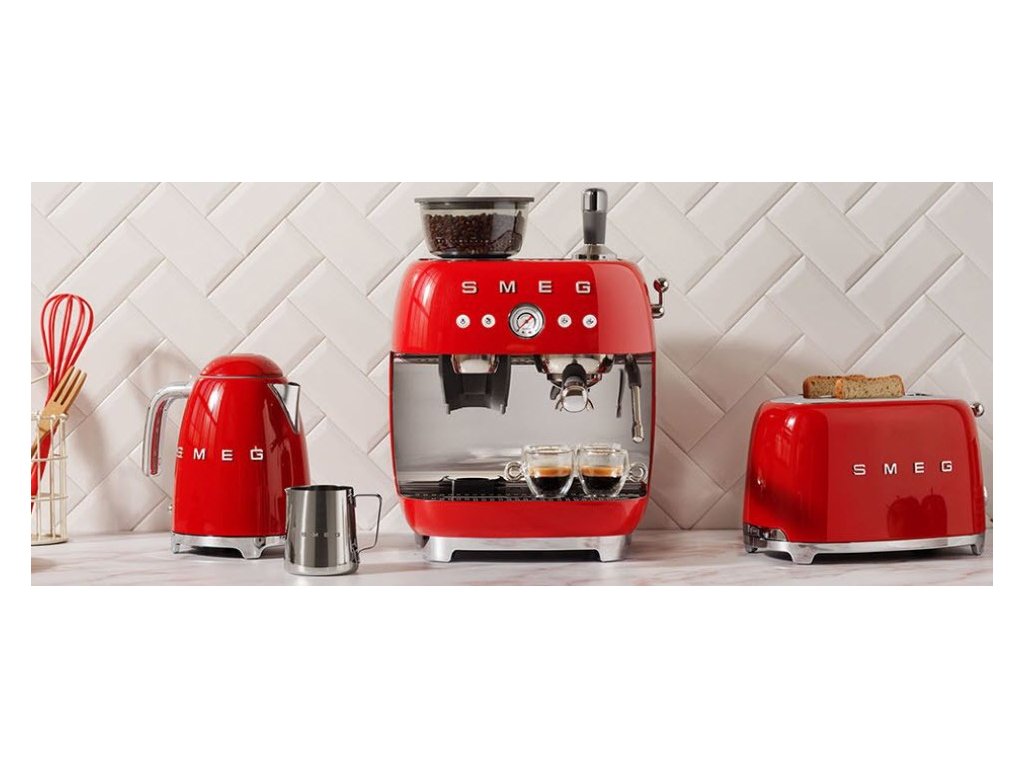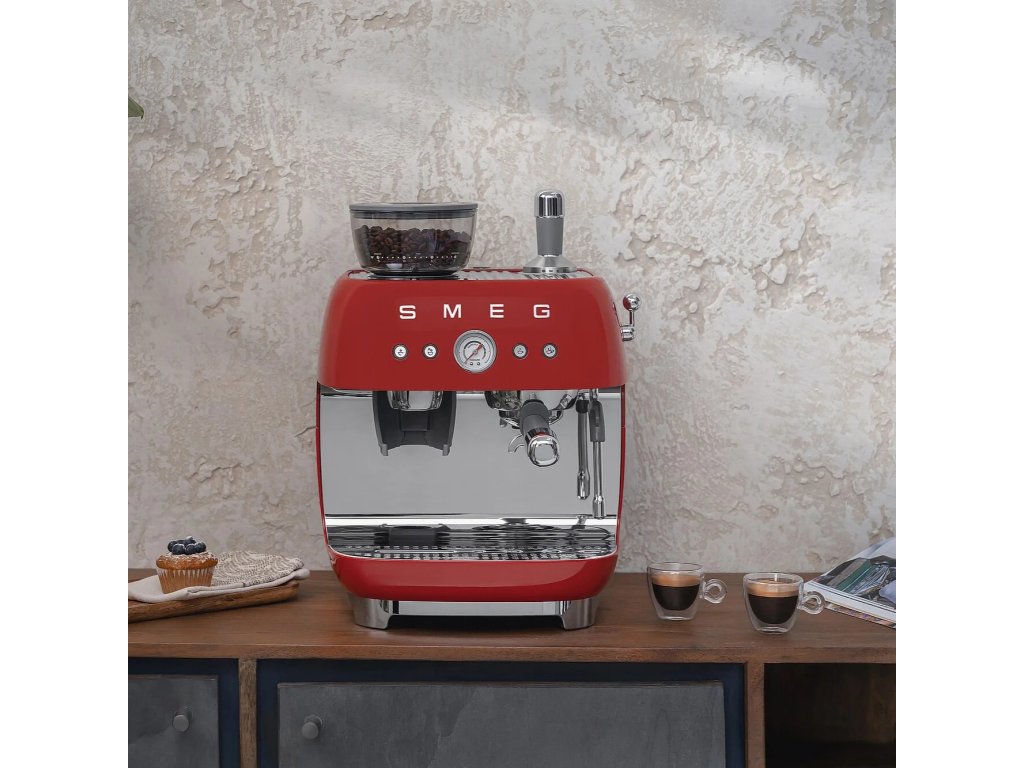 Pákový kávovar s mlynčekom EGF03, 50's Retro Style, červená