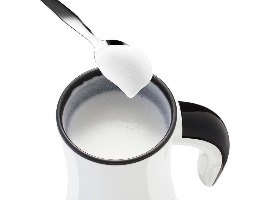 * čistý dizajn evokujúci tradičnú kanvičku na mlieko je doplnený priehľadným vekom pre lepšiu kontrolu procesu napeňovania