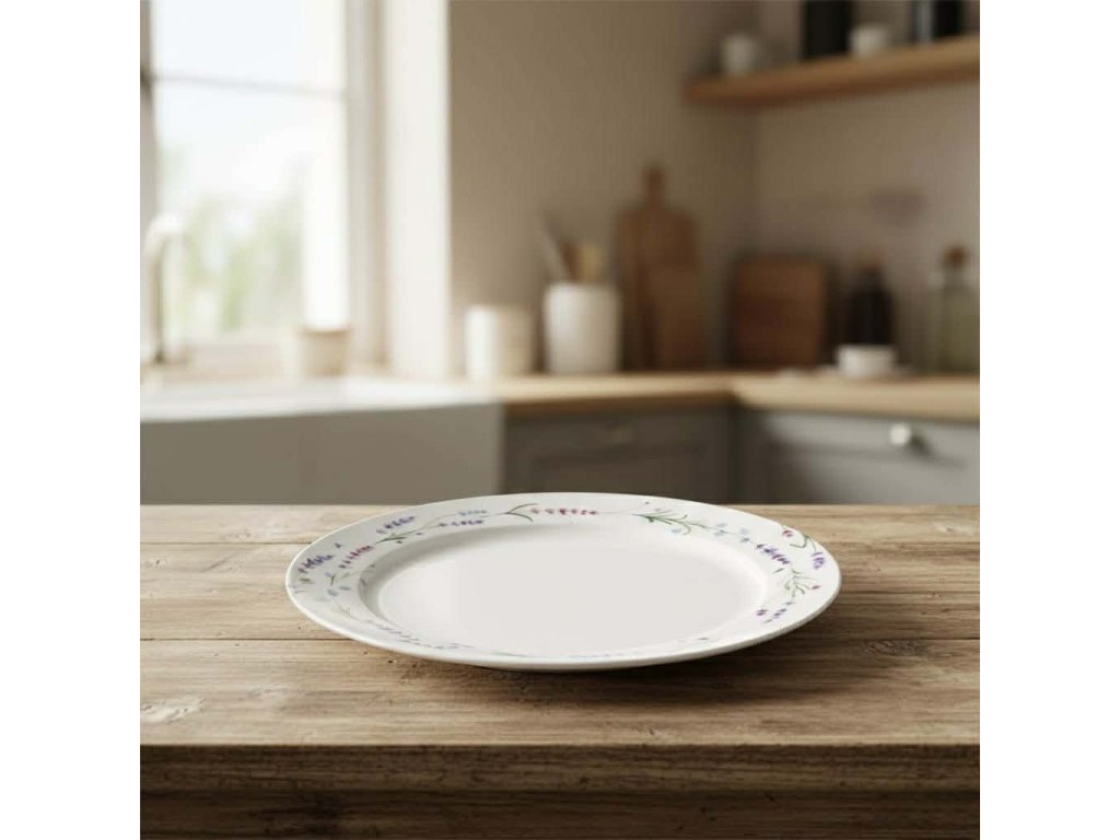- Účel: porcelánový tanier s motívom levandule