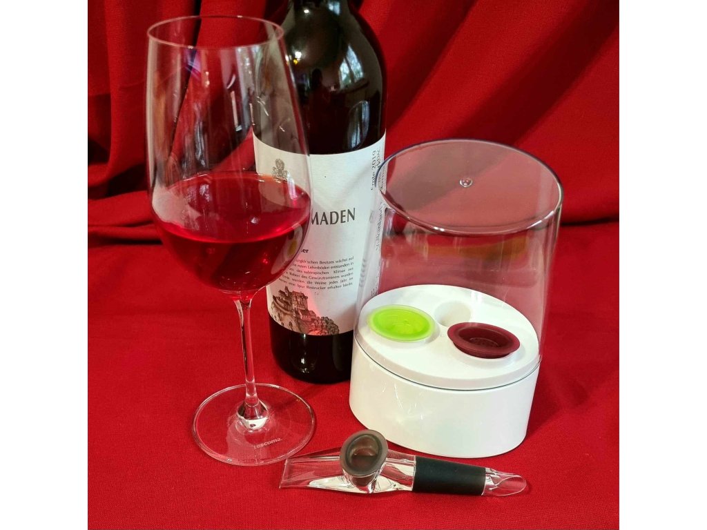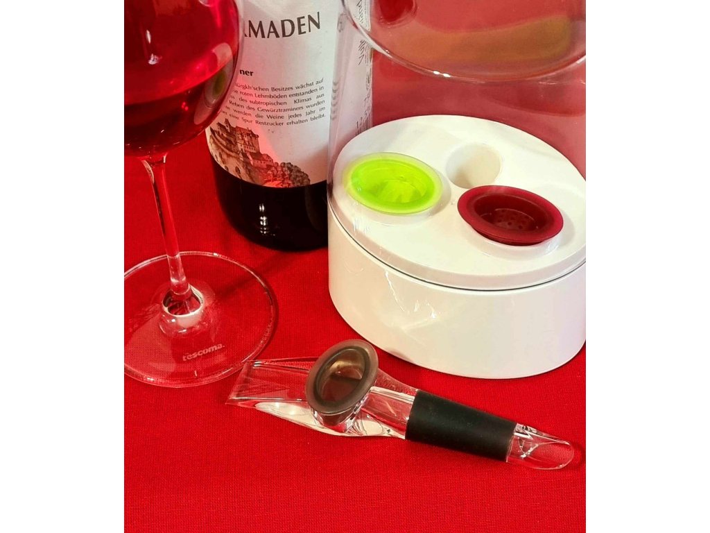 - Účel: rýchle a účinne prevzdušní biele a červené víno počas nalievania do pohárov, víno získa plne rozvinutú chuť a vôňu okamžite a bez čakania, zelený ventil je určený na prevzdušňovanie bielych vín, červený ventil na prevzdušňovanie červených vín a šedý ventil slúži ako lievik