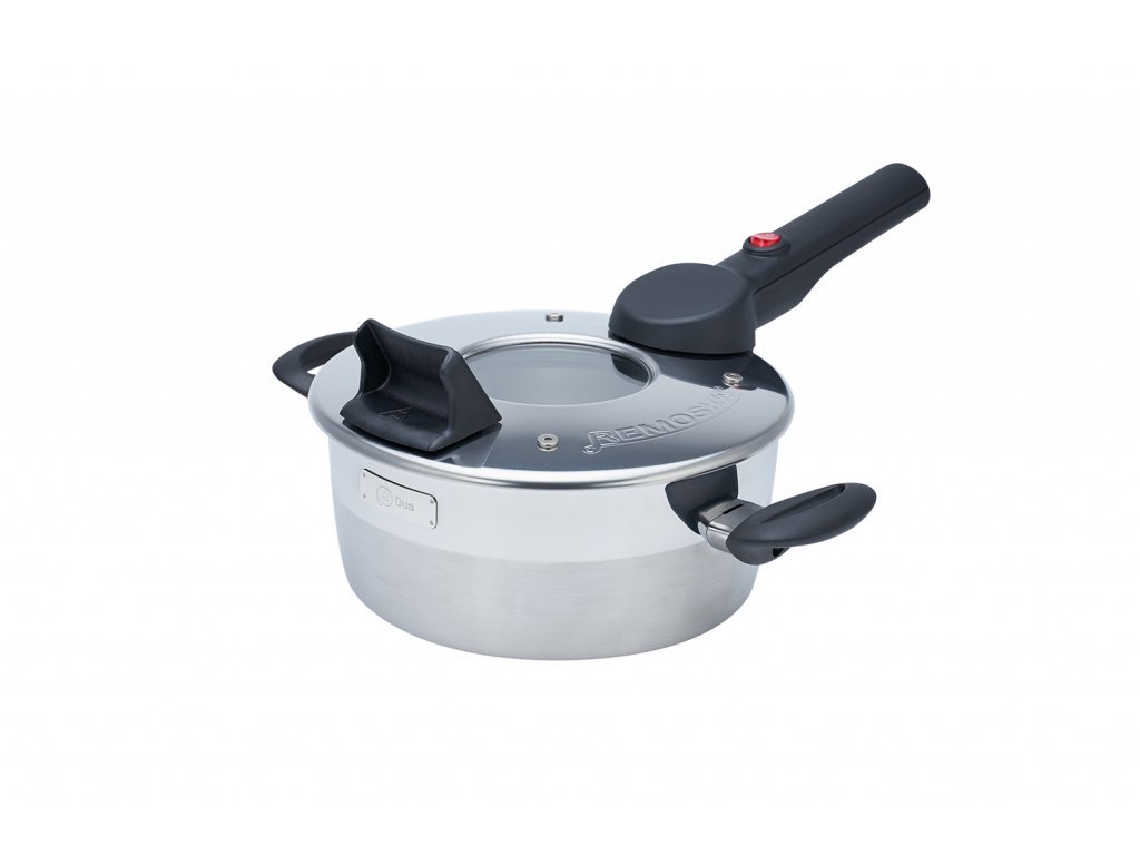 * rôzne veká - jedno veko možno použiť na varenie ako sklenenú pokrievku / druhé slúži kvôli zabudovanej špirále ako veko na pečenie