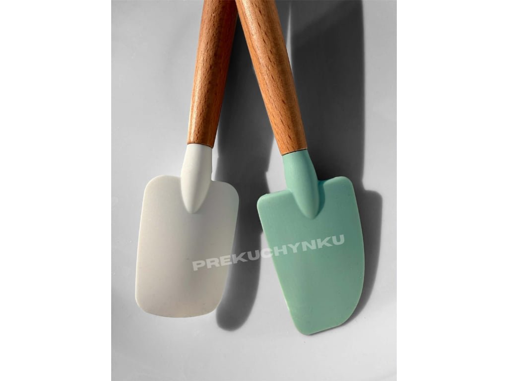 - Typ materiálu: hlavice silikón s atestom pre potraviny, rukoväť bukové drevo
