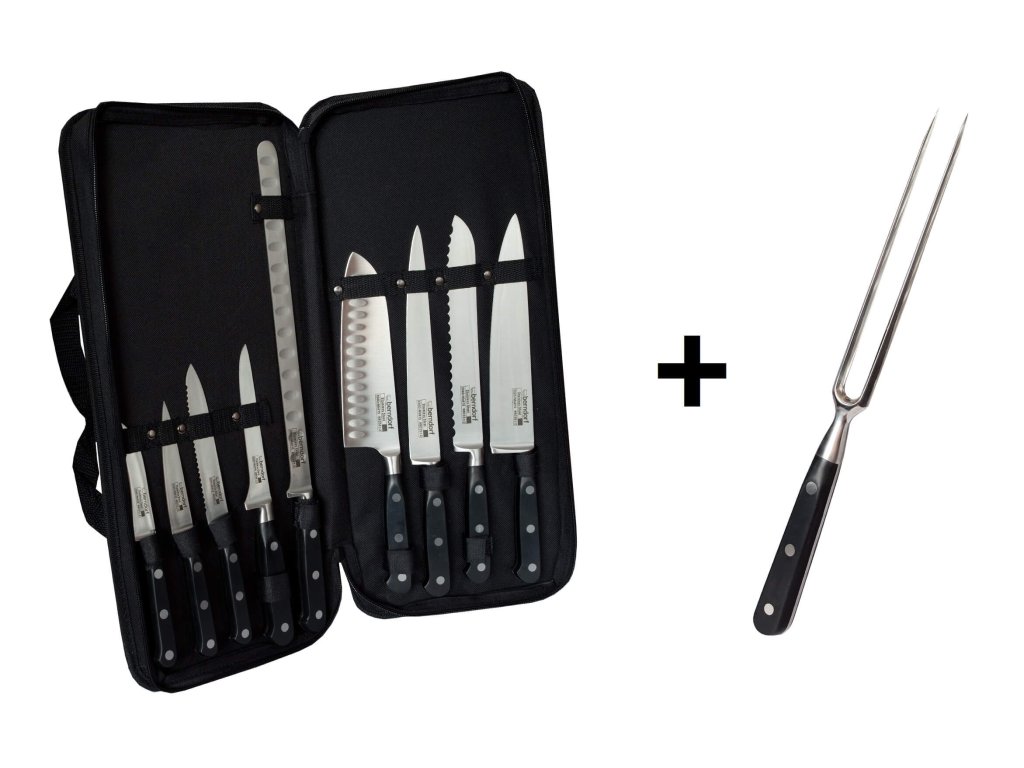 - Účel: súprava 9 kvalitných kuchynských nožov s 1 vidličkou na mäso