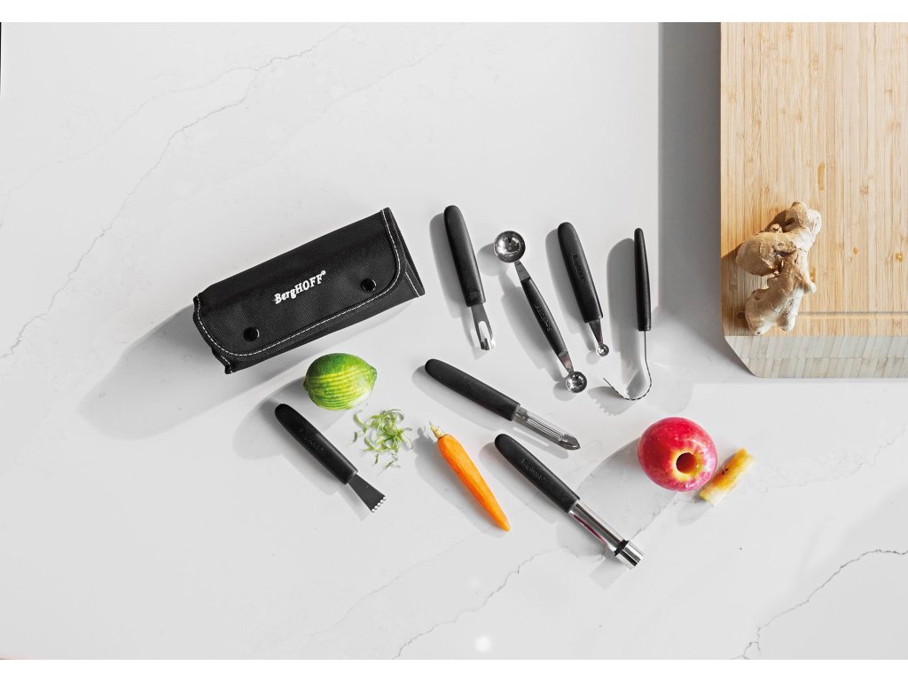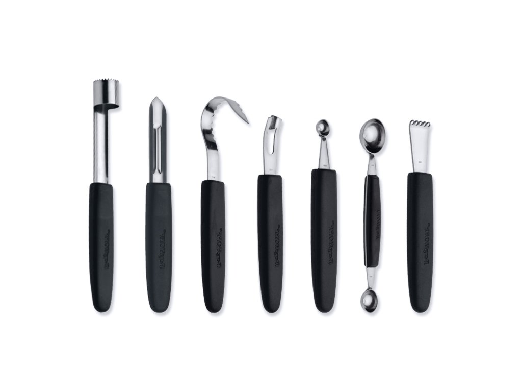 Dokonale rovnomerné melónové guľôčky, elegantná maslová kučera alebo jemné ozdoby na koktaily, s touto 8-dielnou sadou na zdobenie ste plne vybavení na prípravu a zdobenie širokej škály ovocia, zeleniny a iných jedál. Každý kus má pohodlnú PP rukoväť a pevné telo z nehrdzavejúcej ocele. Súprava sa dodáva v nylonovom skladacom vrecku pre ľahké skladovanie a prepravu.