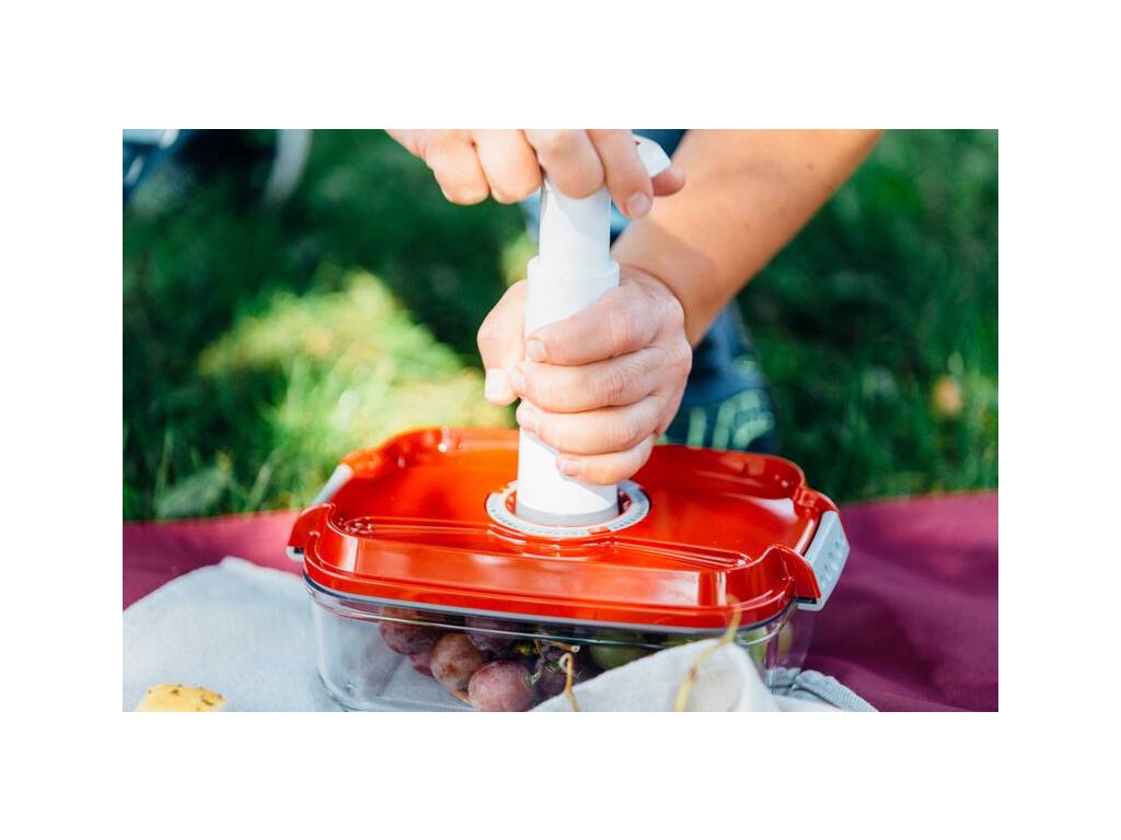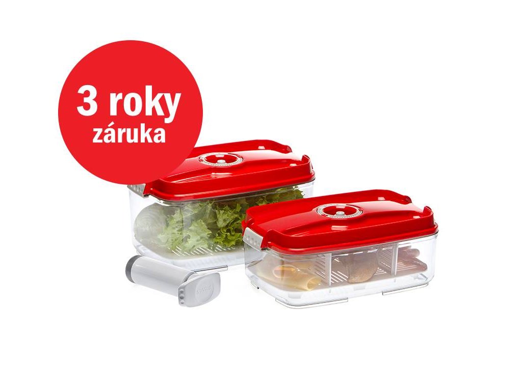 Kompletný 3 dielny set z extrémne odolného tritanu vydrží každodenné používanie, odolá pádu, nenasiakne pachy ani farby potravín a môžete ho používať opakovane. K dózam je možné dokúpiť elektrickú vákuovaciu pumpu.