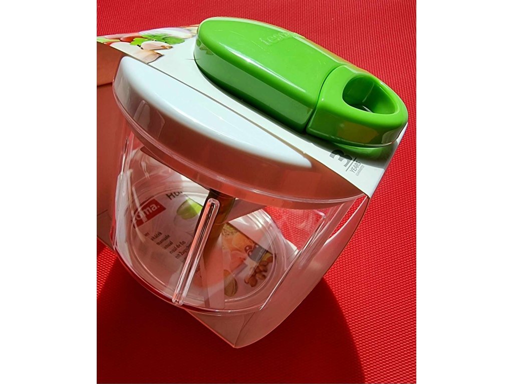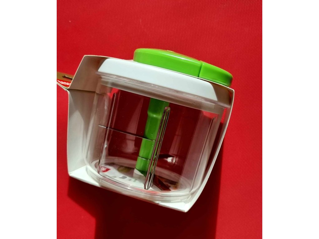 - Účel: ľahké a rýchle nasekanie potravín, výborný na cibuľu, koreňovú zeleninu, rajčiny, bylinky, jablká, hrušky, orechy alebo piškóty a ľahko a rýchlo v ňom pripravíte aj ovocné a zeleninové šaláty, pesto, ľahko dosiahnete požadovanú hrúbku sekania