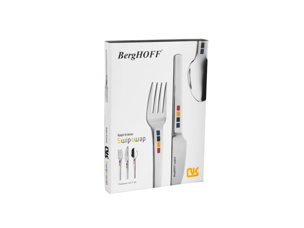 Tento príbor je výsledkom spoluprácu medzi spoločnosťou BergHOFF a oceneným dizajnérom Ralphom Kramerom. Každá položka sa vyznačuje vynikajúcou rovnováhou, vynikajúcim povrchom a silou. To všetko sa dosiahlo použitím vysoko kvalitnej nehrdzavejúcej ocele 18/10 a ergonomicky rozloženej hmotnosti medzi rukoväťou a hlavou. Výrobca odporúča ručné umývanie.