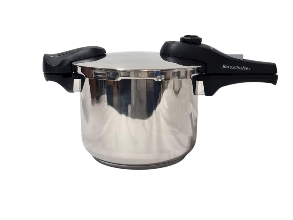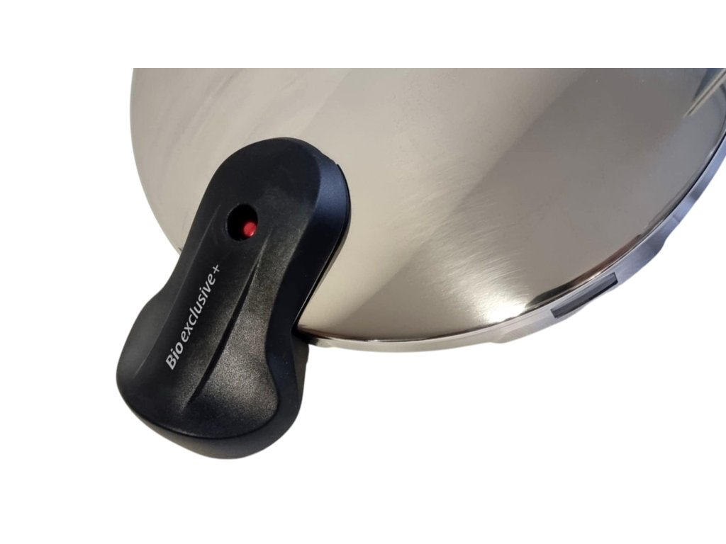 Tlakový hrniec BIO EXCLUSIVE+ umožňuje varenie pri nízkom alebo vysokom tlaku a disponuje systémom BIO EXCLUSIVE+, vďaka nemu pohodlne kontrolujete tlak vo vnútri nádoby. Hrniec je vybavený štyrmi poistkami a masívnymi rukoväťami.