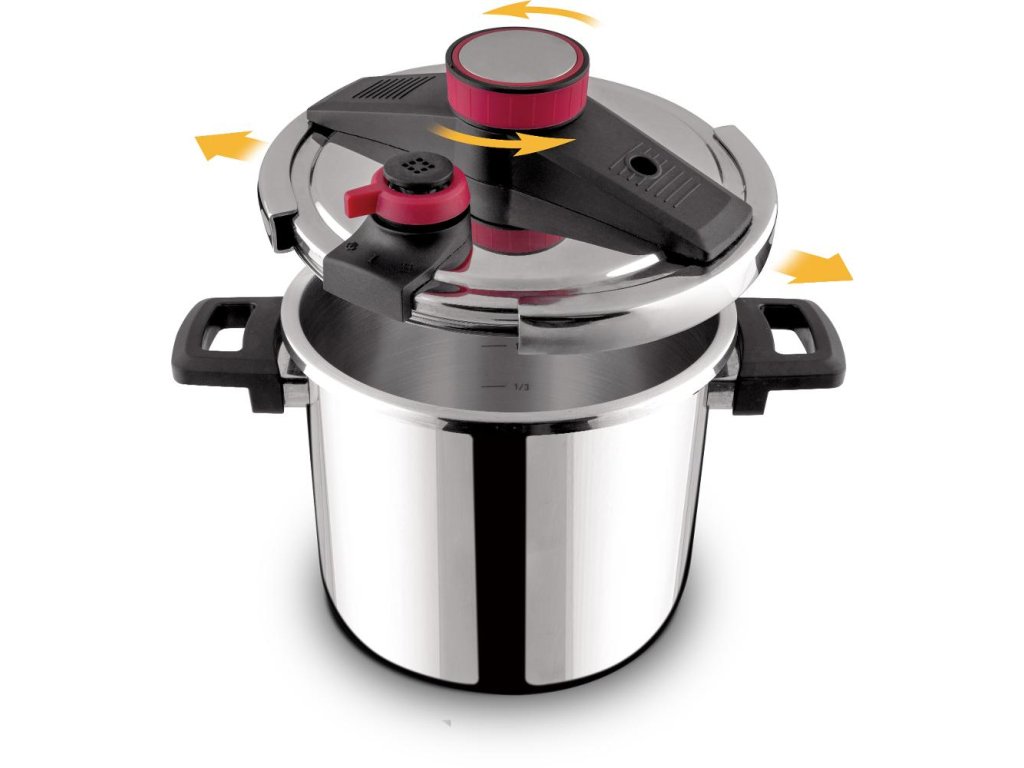 - Účel: tlakový hrniec, jednoduché otváranie a zatváranie hravo i s jednou rukou
