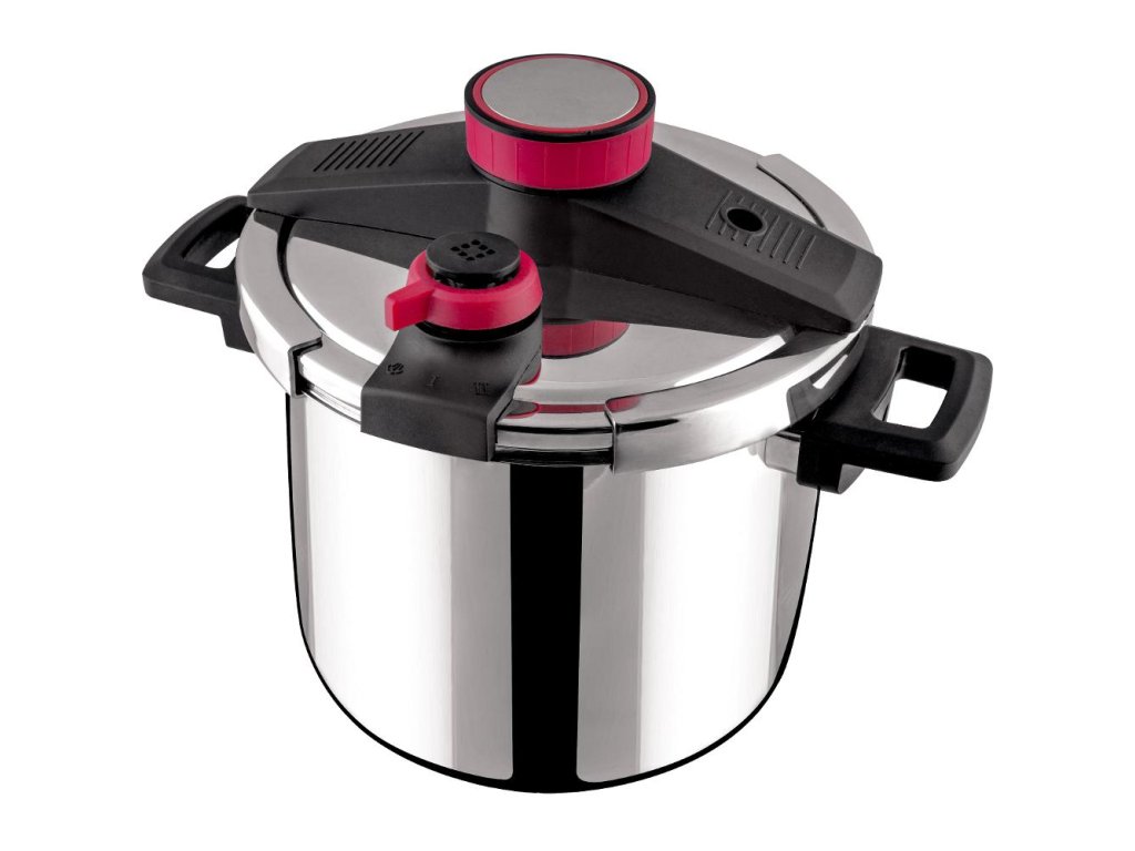 - Bezpečnosť: indikátor tlaku, dvojitý bezpečnostný ventil a bezpečnostné okienko, poistka proti pretlaku