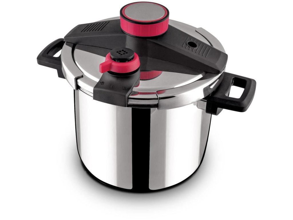- Bezpečnosť: indikátor tlaku, dvojitý bezpečnostný ventil a bezpečnostné okienko, poistka proti pretlaku