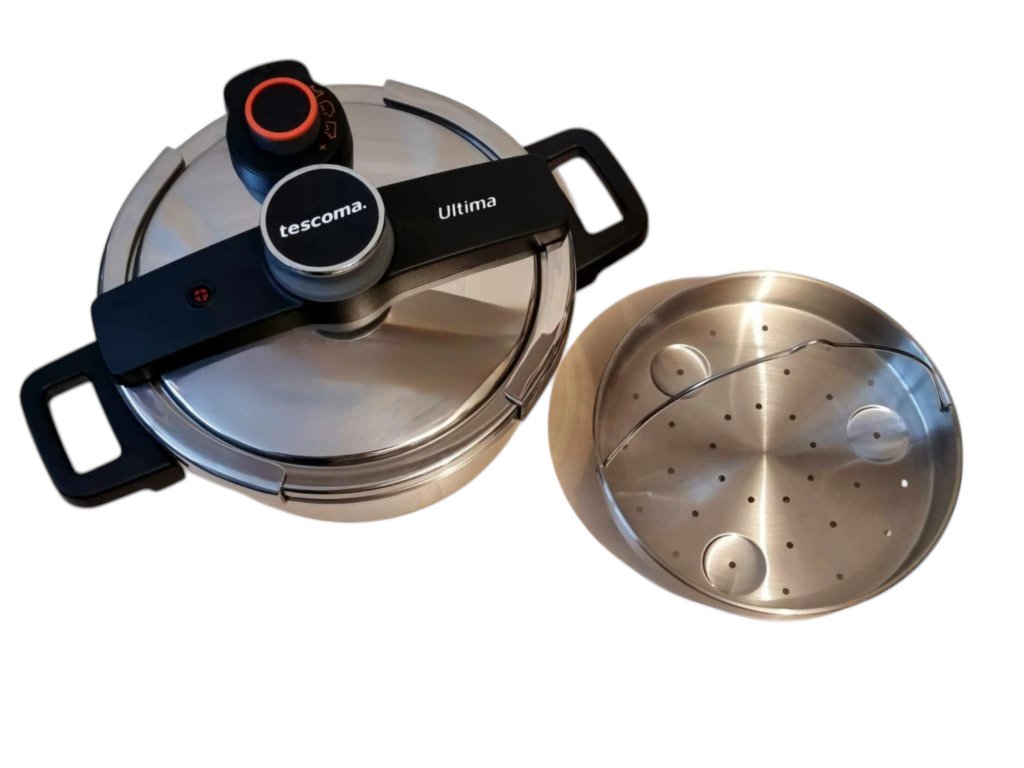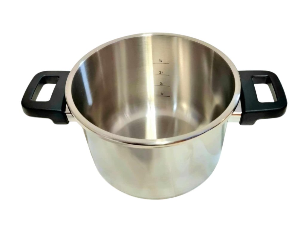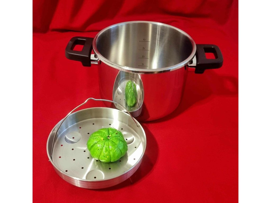 - Typ materiálu: prvotriedna oceľ a odolný plast, má 4 bezpečnostné poistky, indikátor tlaku v hrnci a nádoba hrnca je vybavená stupnicou, rozvod tepla zabezpečuje trojvrstvové sendvičové dno