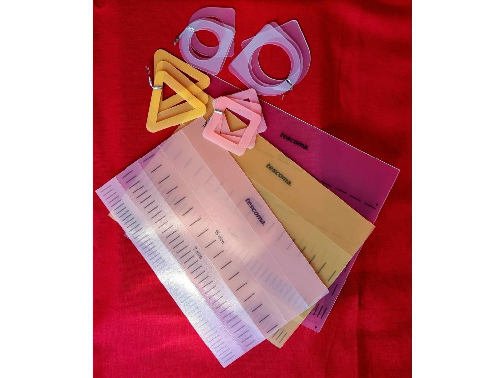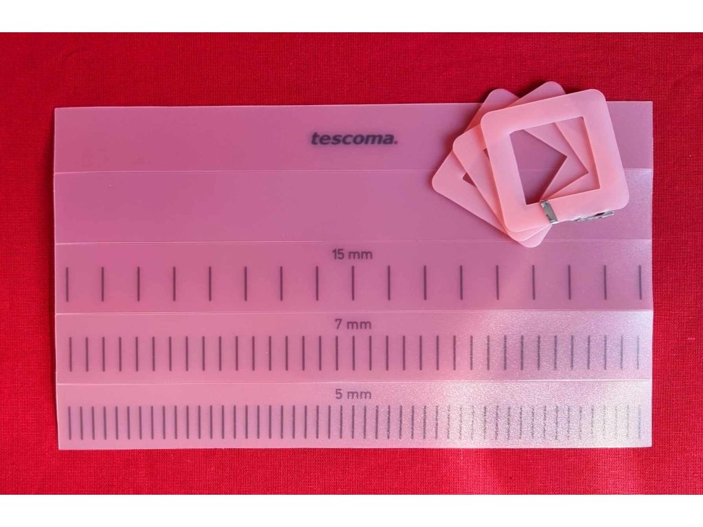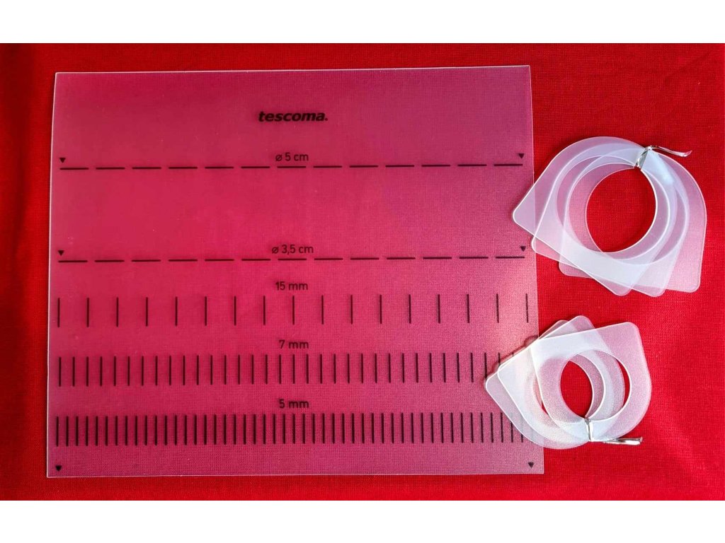 - Účel: na jednoduchú a rýchlu prípravu sladkého aj slaného, pečených aj nepečených cukroviniek, sušienok, perníkov a krekrov z tuhých ciest, vhodné aj na prípravu sushi, tri pružné šablóny na cukroviny v tvare štvorčekov, trojuholníkov, malých a veľkých koliesok, so stupnicami na presné krájanie a objímkami na chladenie cesta v chladničke