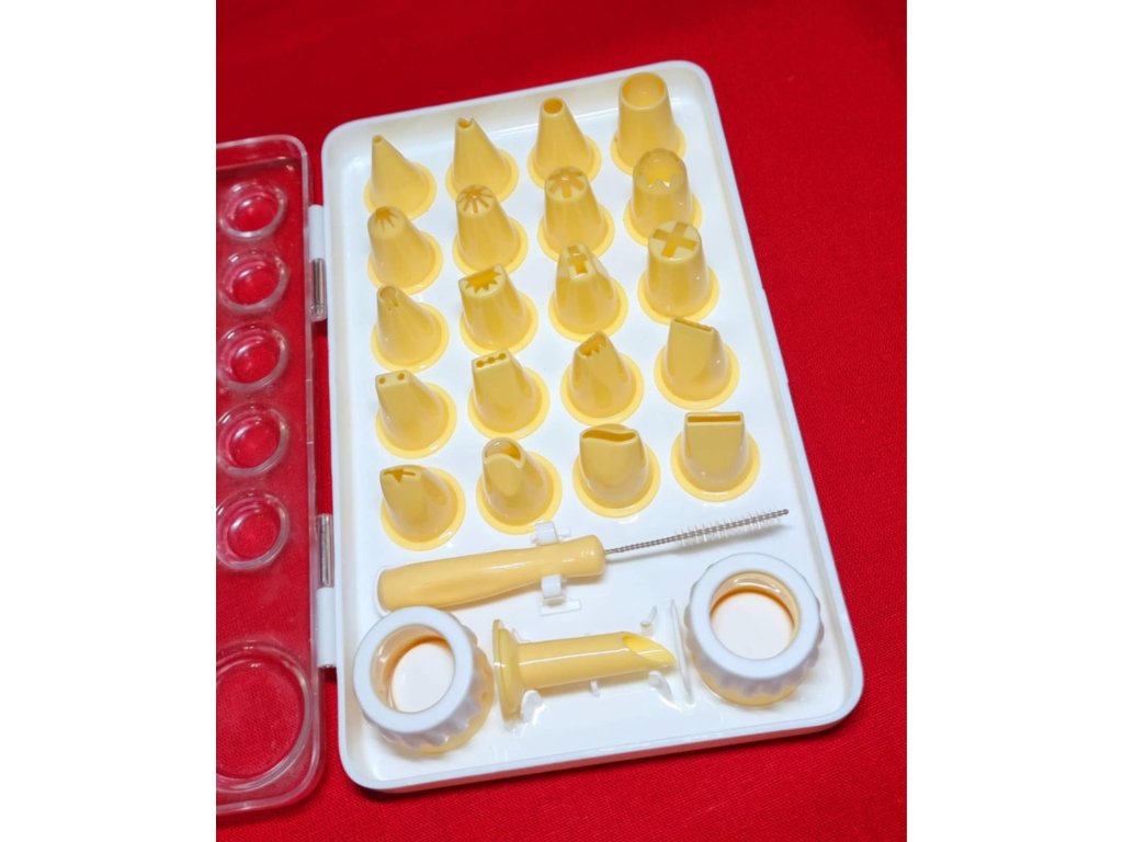 - Účel: dekorovanie tôrt, plnenie pokrmov, súprava obsahuje 20 zdobiacich a 1 plniacu trysku, čistiacu kefku a 2 adaptéry, trysky sú označené číslami